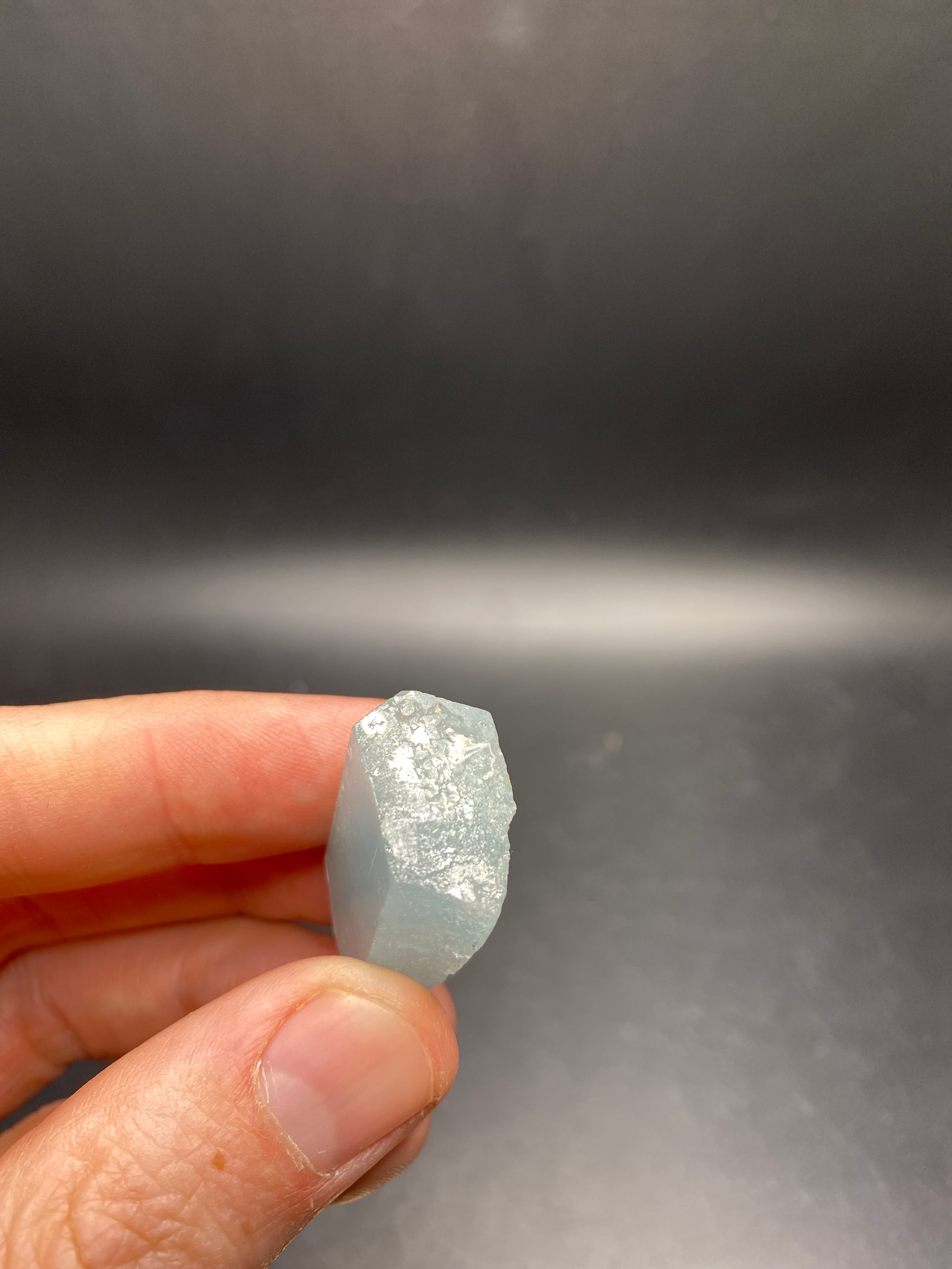 This aquamarine crystal is sourced from Brazil and is one of a kind. It has a unique and appealing non-terminated shape and measures 1 inch long and weighs 14 grams. The perfect addition for any crystal enthusiast.