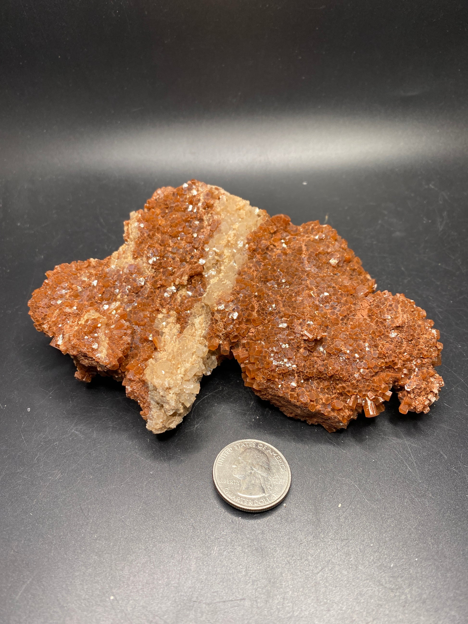 From the ancient mines of Morocco comes this rare Aragonite piece, weighing 442g and 6 inches in length. Its surface is adorned with druzy crystals, providing a unique visual texture and aesthetic. Perfect for any mineral collection!