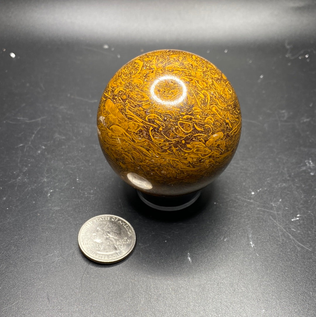 The Calligraphy Stone Sphere is a stunning piece of natural art. This spherical stone features unique calligraphy-like patterns, making it a one-of-a-kind addition to any collection. Its smooth surface is perfect for meditation or decoration, while its intricate patterns are sure to inspire and captivate. Own a piece of nature's beauty with the Calligraphy Stone Sphere.