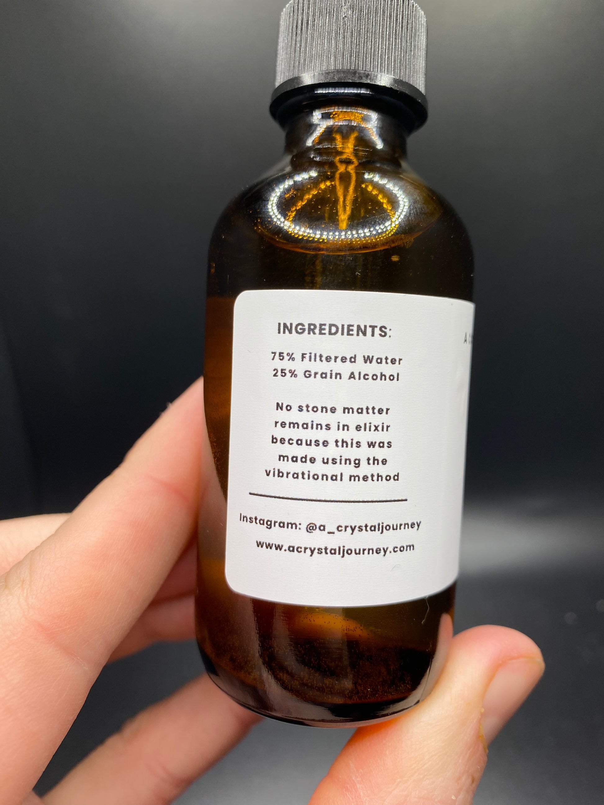 Ingredients: 2 oz bottle - 25% grain alcohol and 75% filtered water. No stone matter remains in elixir because this was made using the vibrational method.