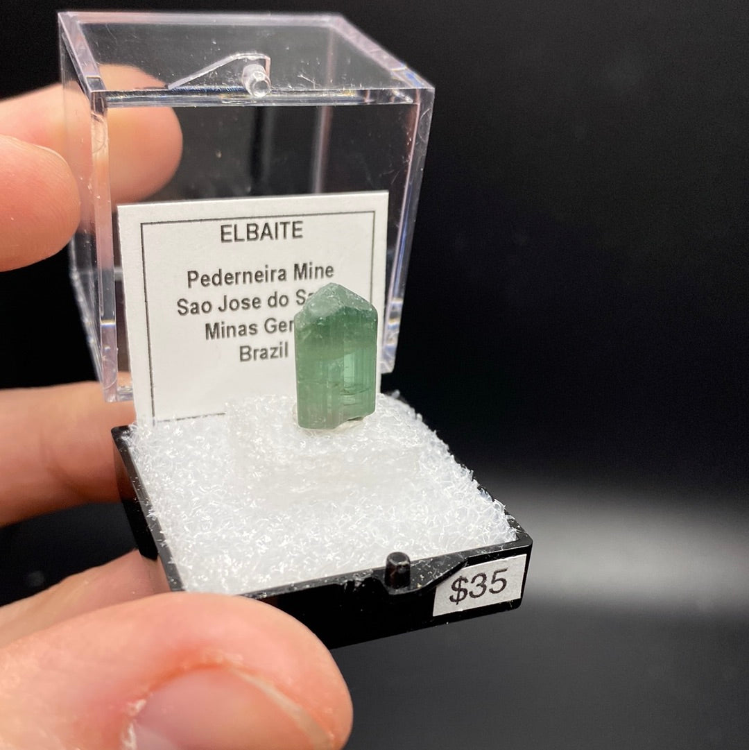 This is a one of one Elbaite Tourmaline thumbnail specimen from Brazil.