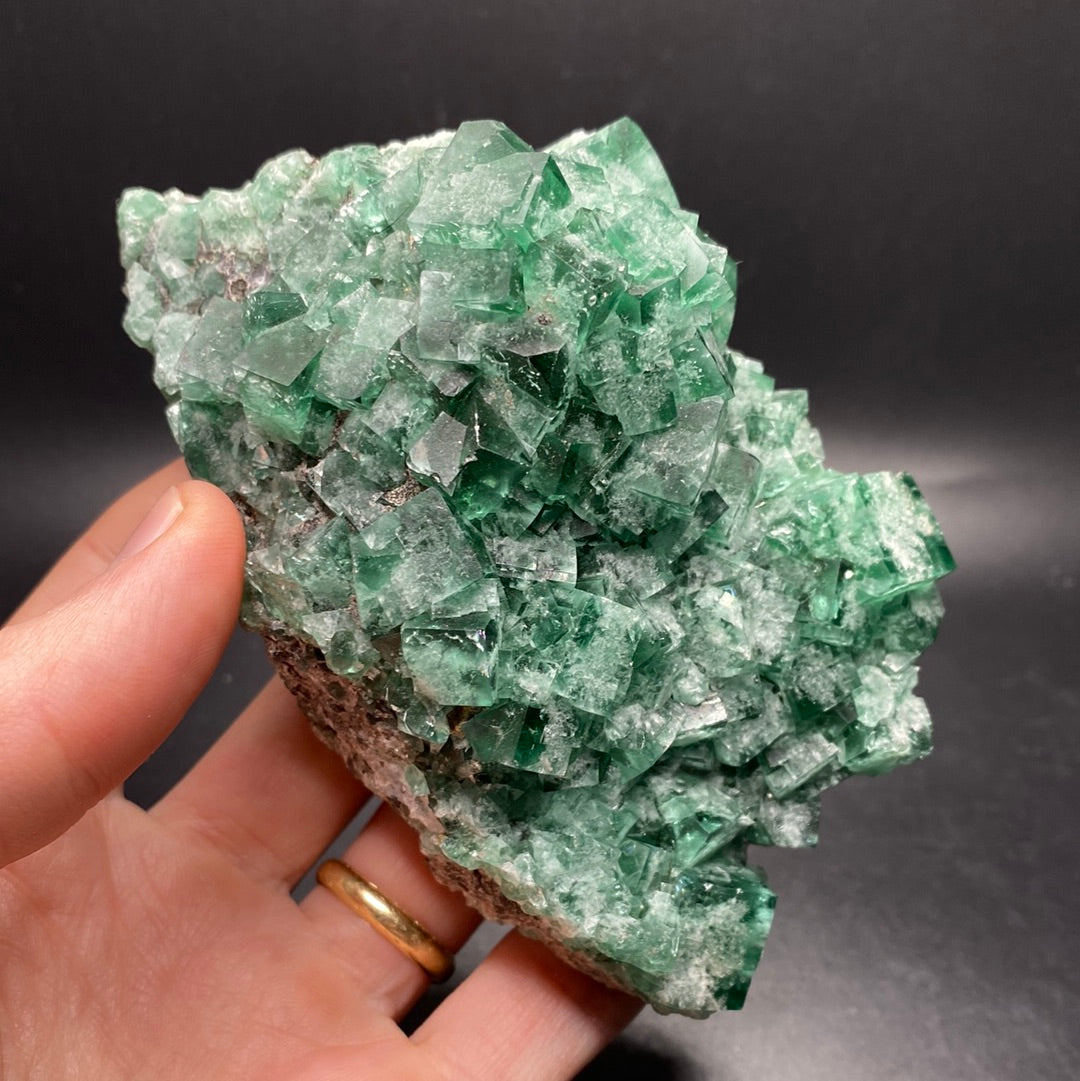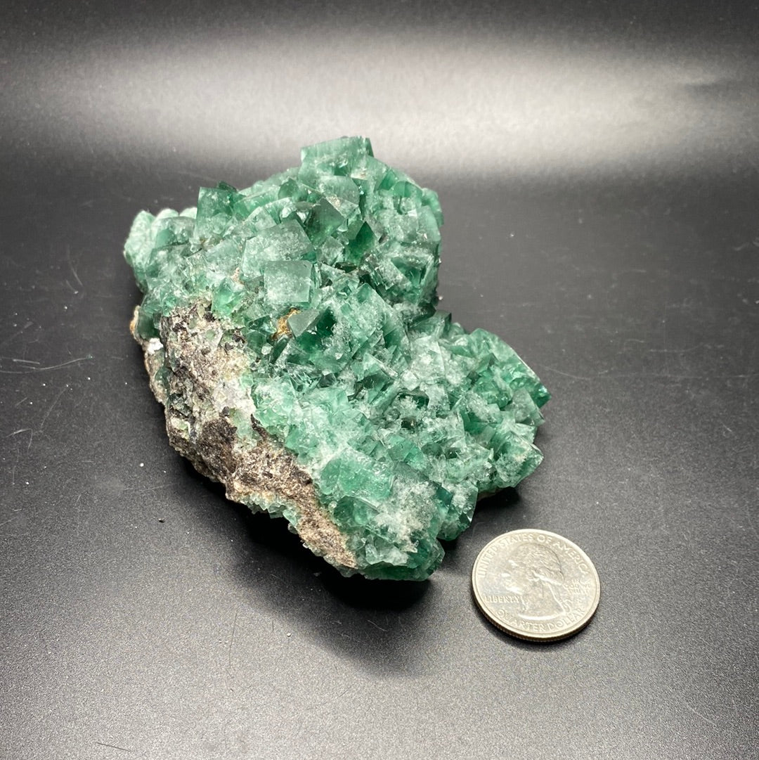 This is a one of one Fluorite specimen from the Hidden Forest Pocket in the UK. This Fluorite will show hints of blue when exposed to sunlight. Weight is 411g.