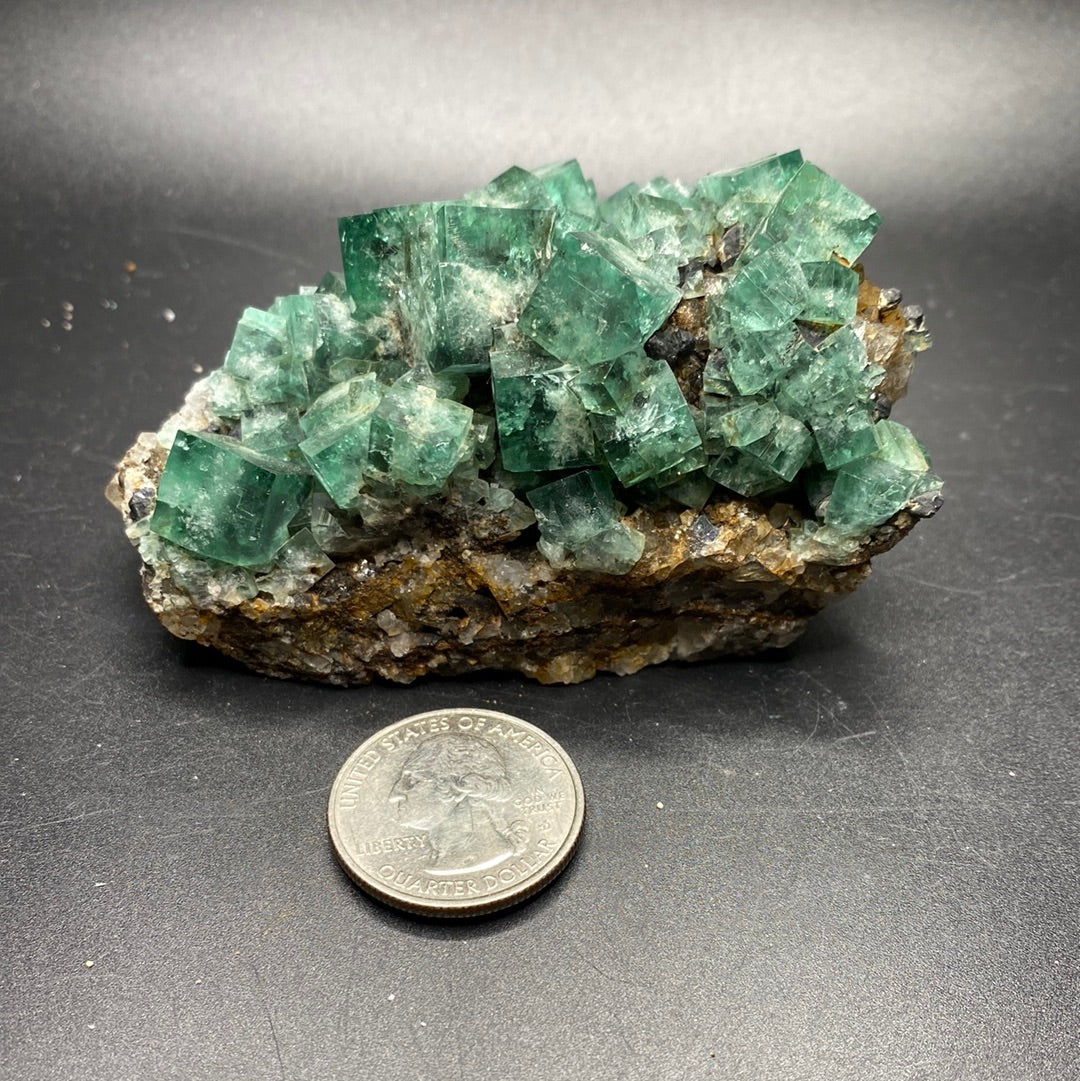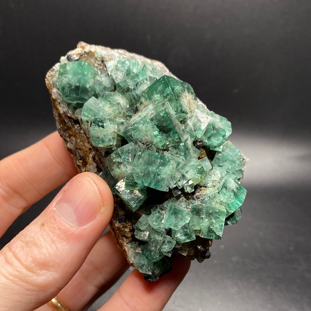 This is a one of one Fluorite specimen from the Hidden Forest Pocket in the UK. This Fluorite will show hints of blue when exposed to sunlight. Weight is 248g.