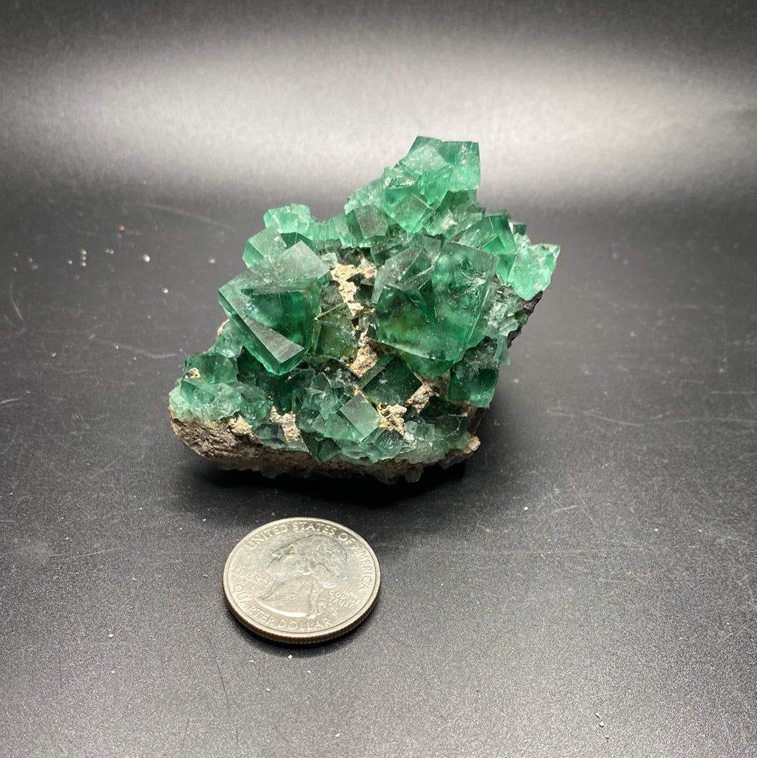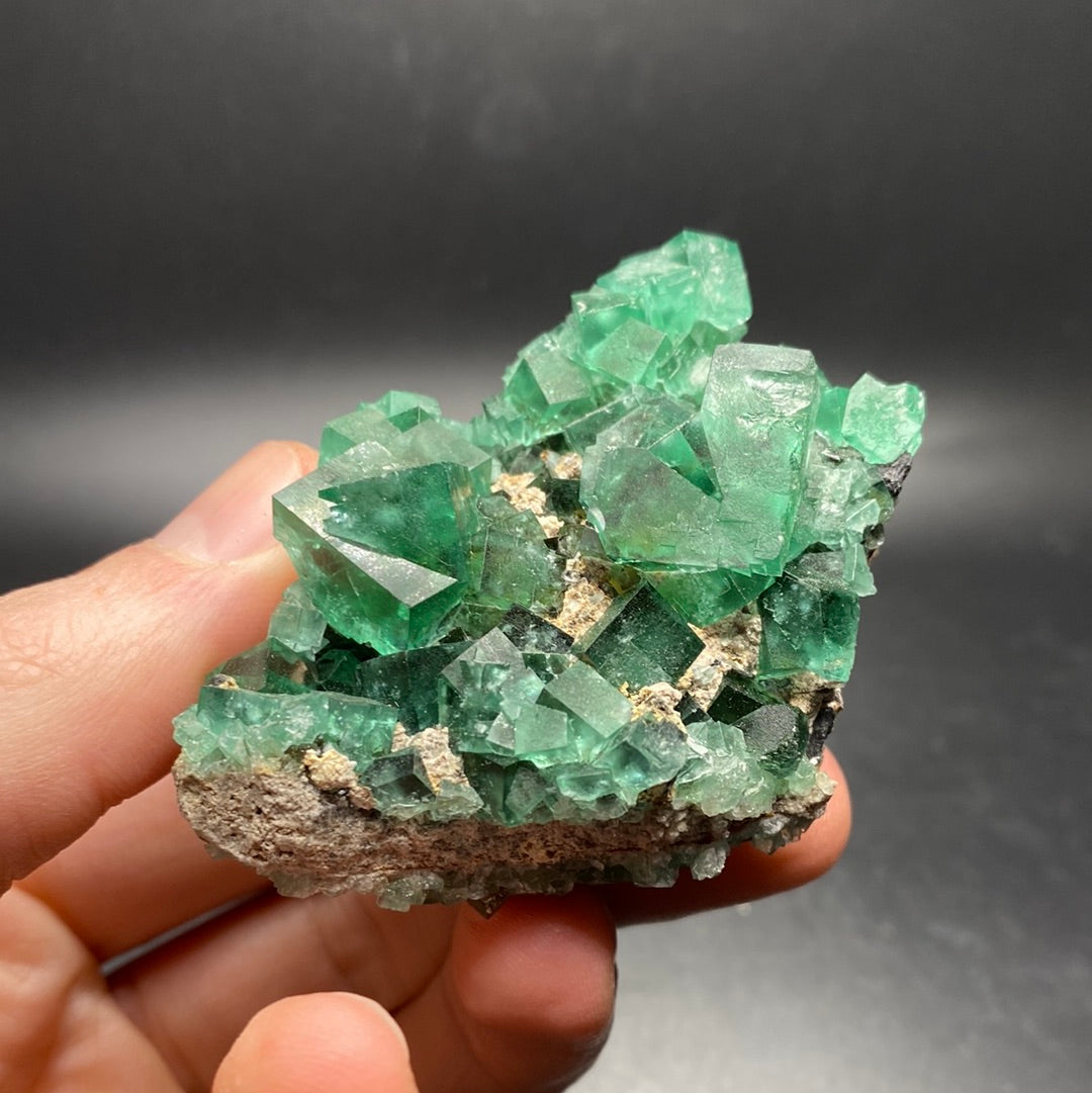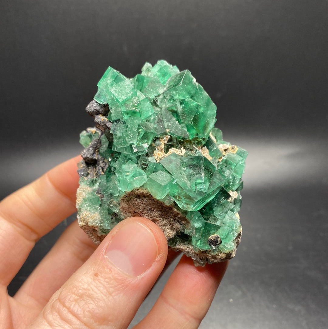 This is a one of one Fluorite specimen from the Hidden Forest Pocket in the UK. This Fluorite will show hints of blue when exposed to sunlight. Weight is 163g.