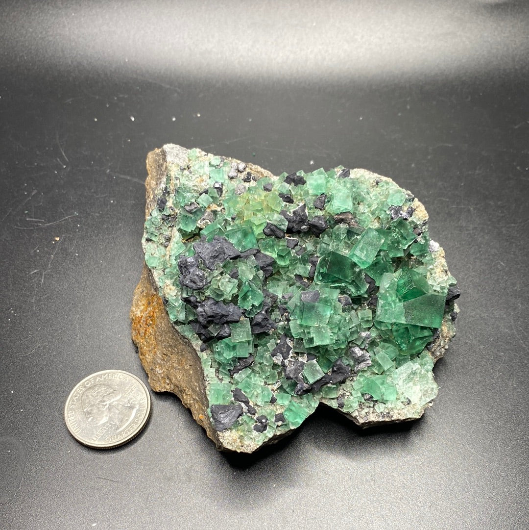 This is a one of one Fluorite specimen from the Hidden Forest Pocket in the UK. This Fluorite will show hints of blue when exposed to sunlight. Weight is 361g.