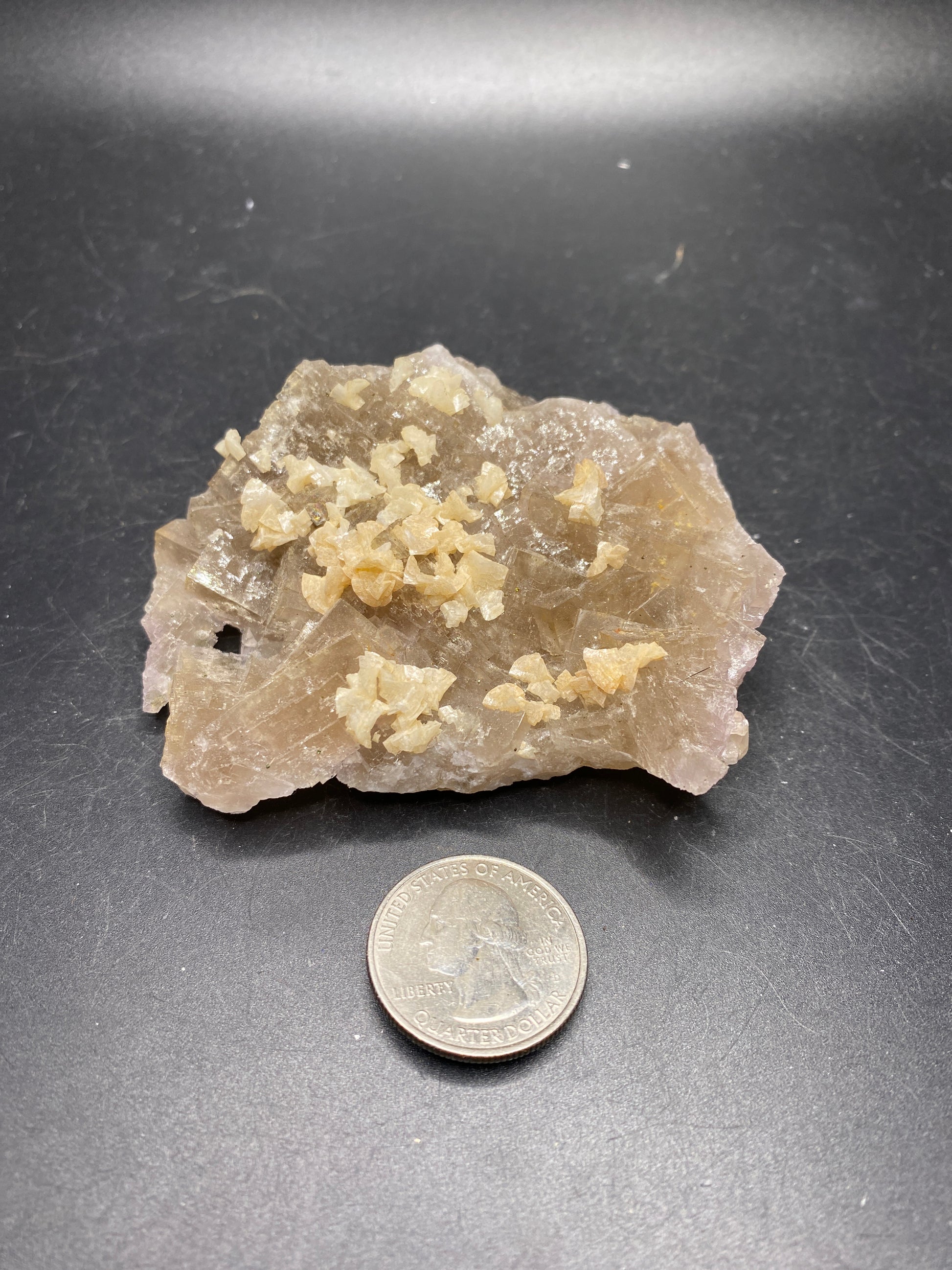 This is a one of one Fluorite Specimen from the Moscana mine in Spain. Fluorite from this location has great yellow color and also often includes Barite, Dolomite, Dogtooth Calcite, and Chalcopyrite.