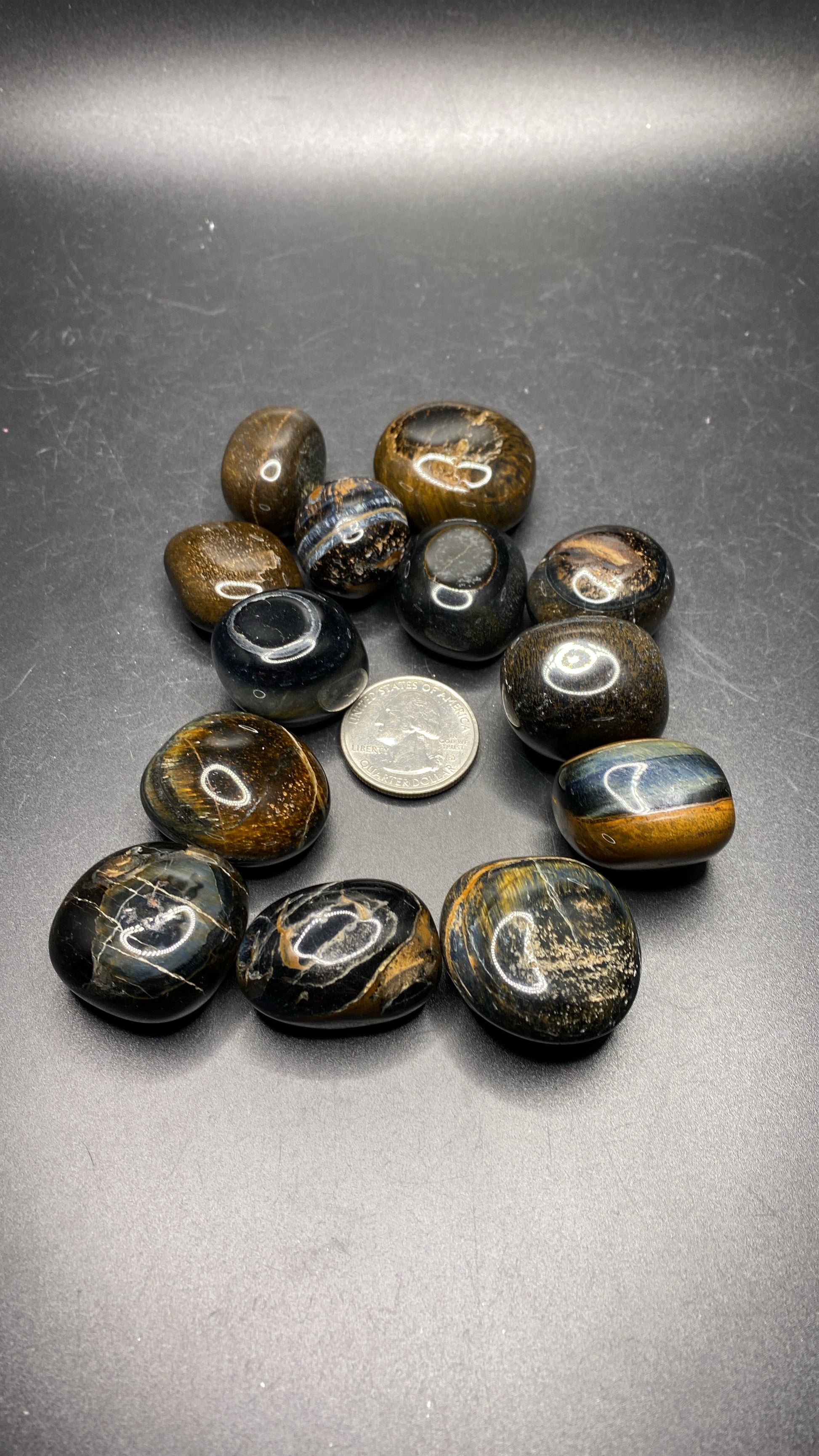 Experience the calming beauty of Hawk's Eye Tumble! This breathtaking gemstone radiates a deep and vibrant blue that's sure to soothe the soul. Let its serene energy help you reconnect with nature and enjoy the simple pleasures of life.