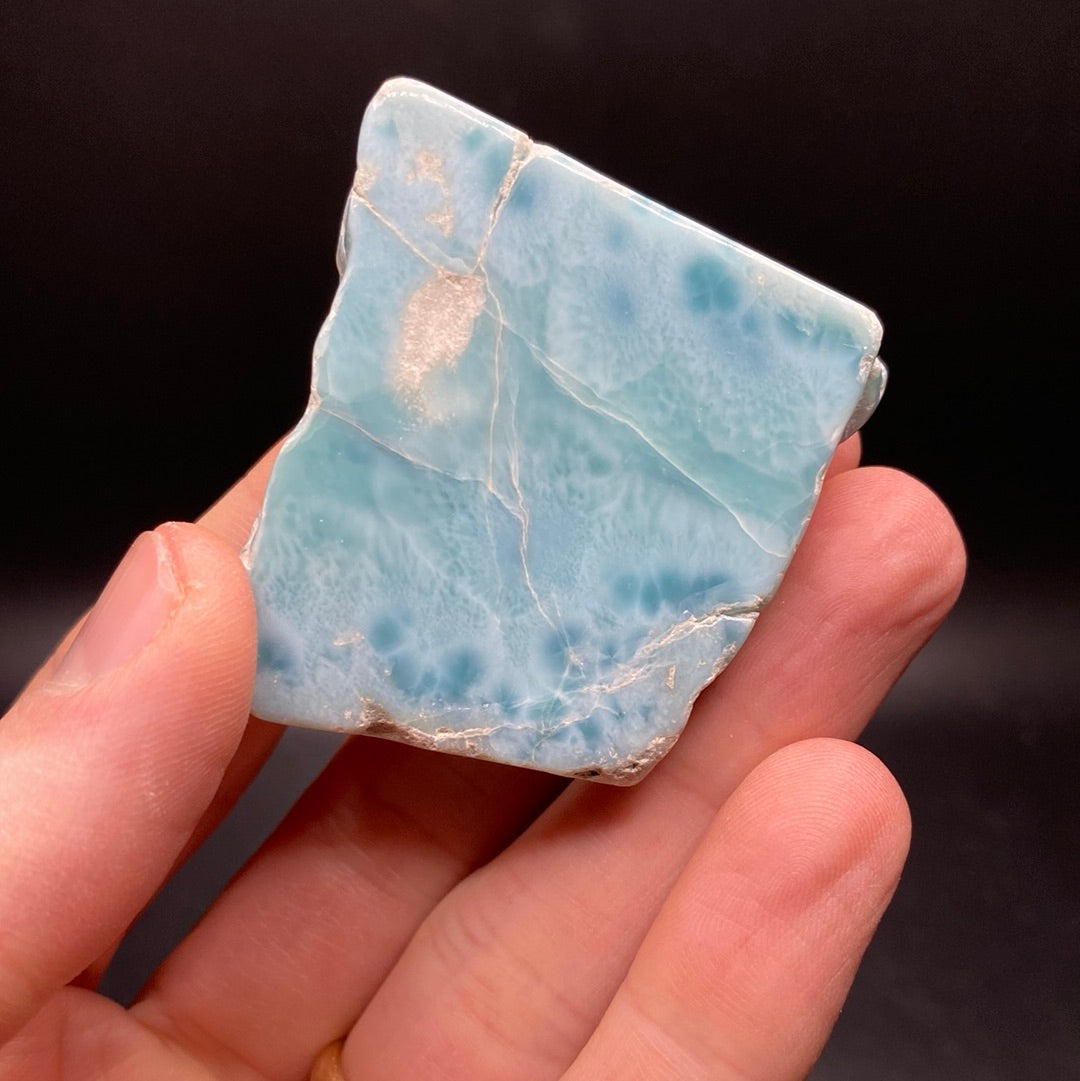 This is a high grade polished slab of Larimar from the Dominican Republic. Weighs 52.9g.