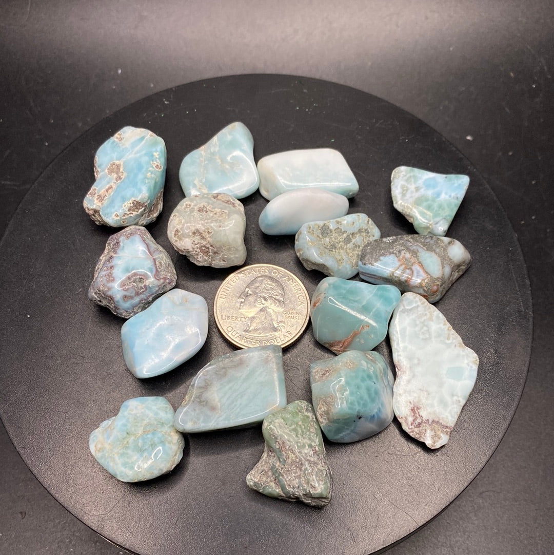 Channel the Caribbean vibes with these one-of-a-kind larimar tumbles! Hand-selected from the Dominican Republic, each tumble stone brings a unique splash of blue, so you can find the perfect piece for your personal collection. So grab yourself a tropical gem, and feel the Caribbean sunshine!