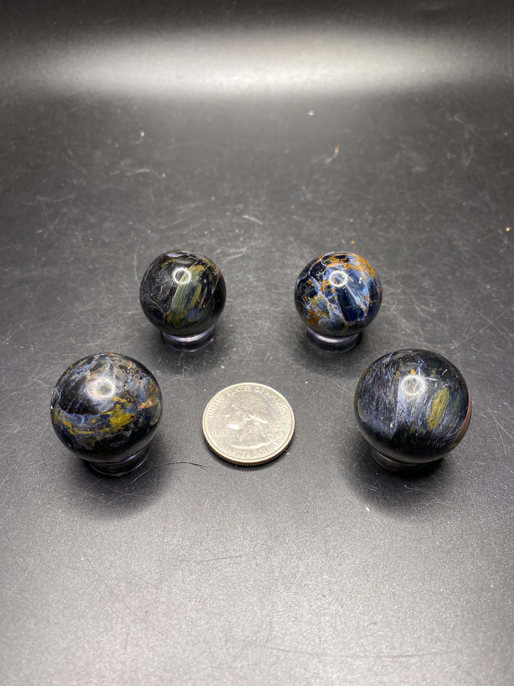 Pietersite spheres from Namibia. Pietersite is an extremely rare microcrystalline chalcedony which has only ever been found in two locations. China in 1990 and in Namibia.