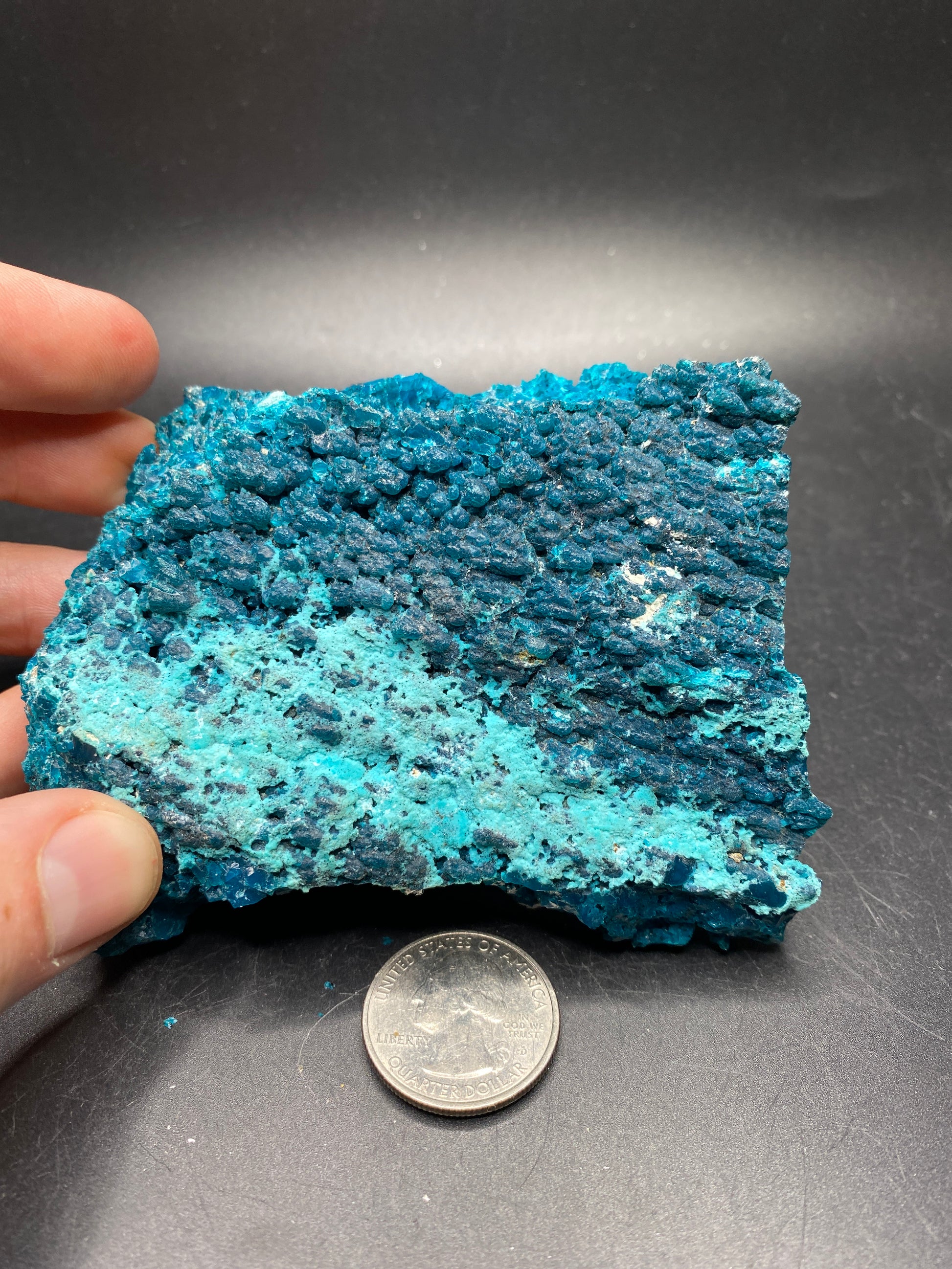 High grade Chrysocolla from the Cunyari mine in Peru. This is a highly desirable location for Chrysocolla with the highest grade specimens coming from this location.