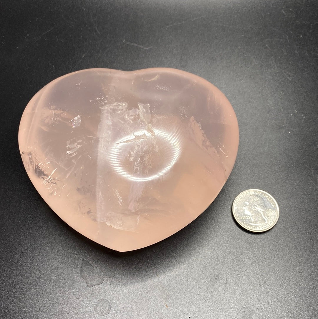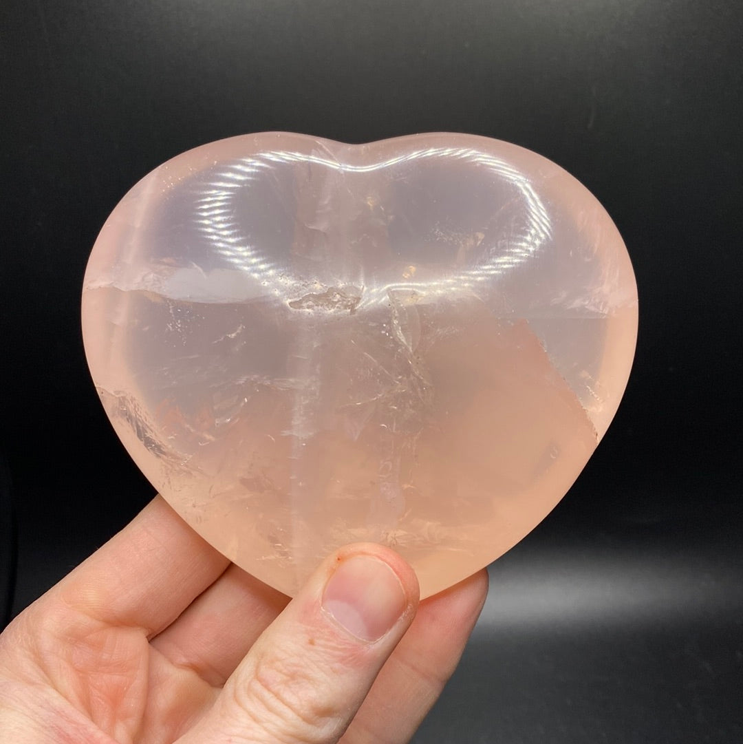 Large Rose Quartz Heart from Brazil. It weighs 655g and is 4 inches wide.