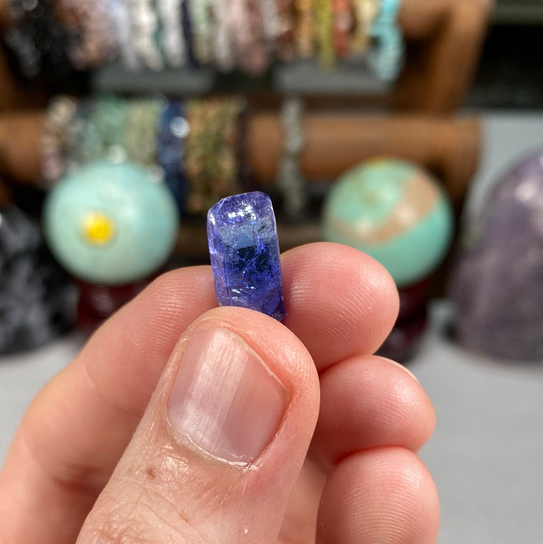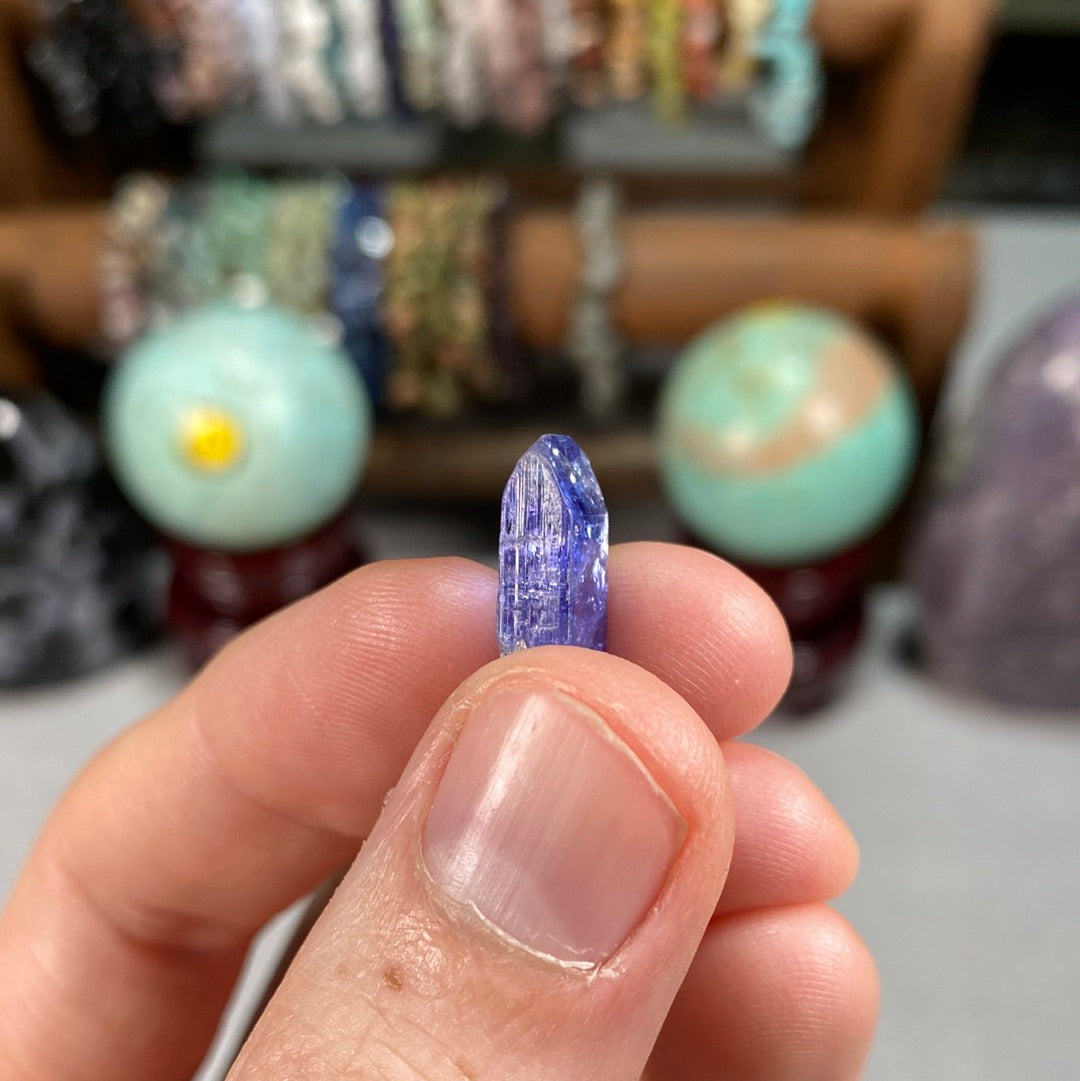 This gorgeous terminated Tanzanite from Tanzania is a must-have for any gemstones enthusiast! It's saturated shimmering blue and purple hues will light up any room and its eye-catching brilliance will leave your friends and family in awe. Get yours today and experience the luxurious beauty of Tanzanite for yourself!