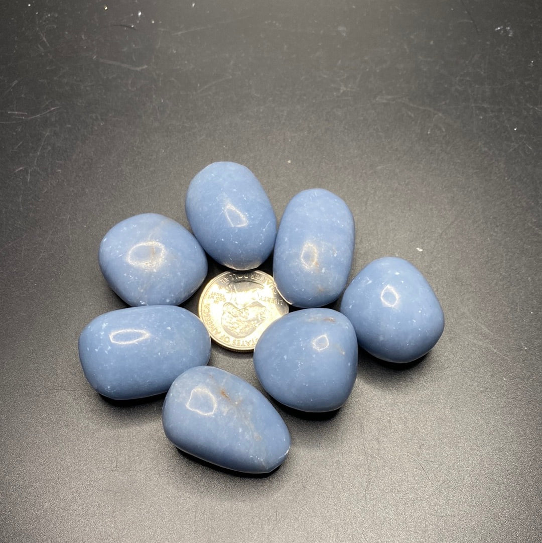 Discover the beauty of angelic energy with this Tumbled Angelite from Peru. Feel its energy lift your spirits and open your heart to peace and love. Perfect for your next crystal healing session or meditation.