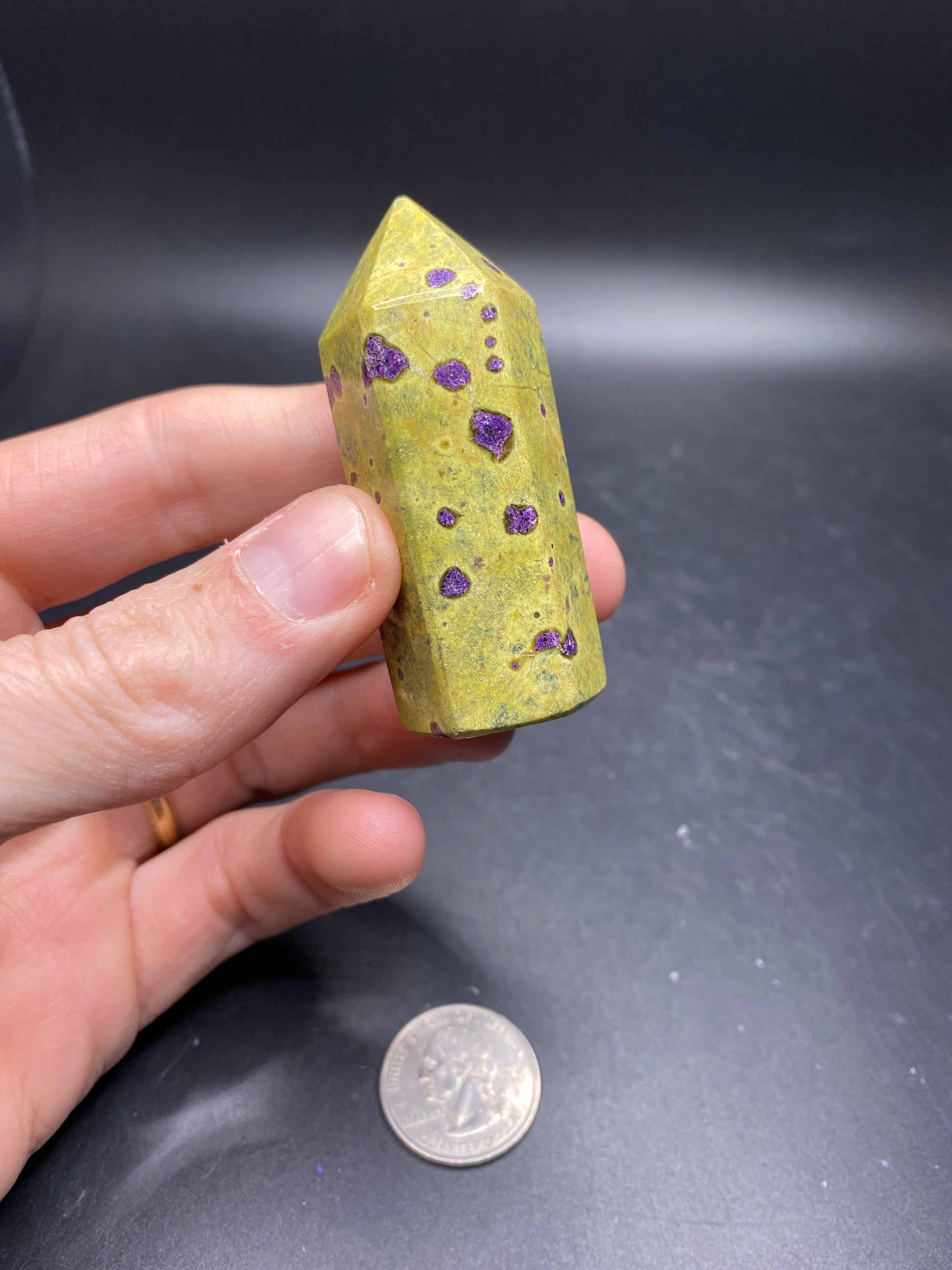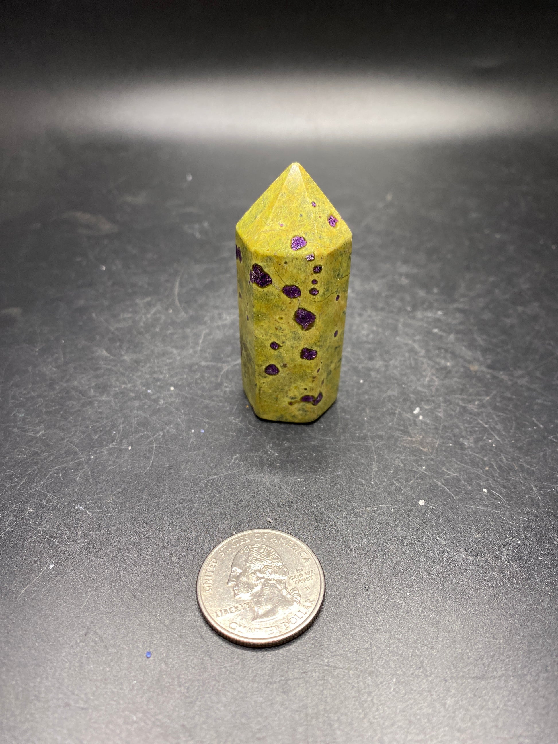 Unleash the natural healing powers of Atlantisite with this majestic tower straight from Tasmania! A gorgeous combination of Serpentine and Stitchite, let the soothing vibrations of this unique crystal guide you to inner peace and balance. Its vibrant colors and swirling patterns make it a stunning addition to any collection.