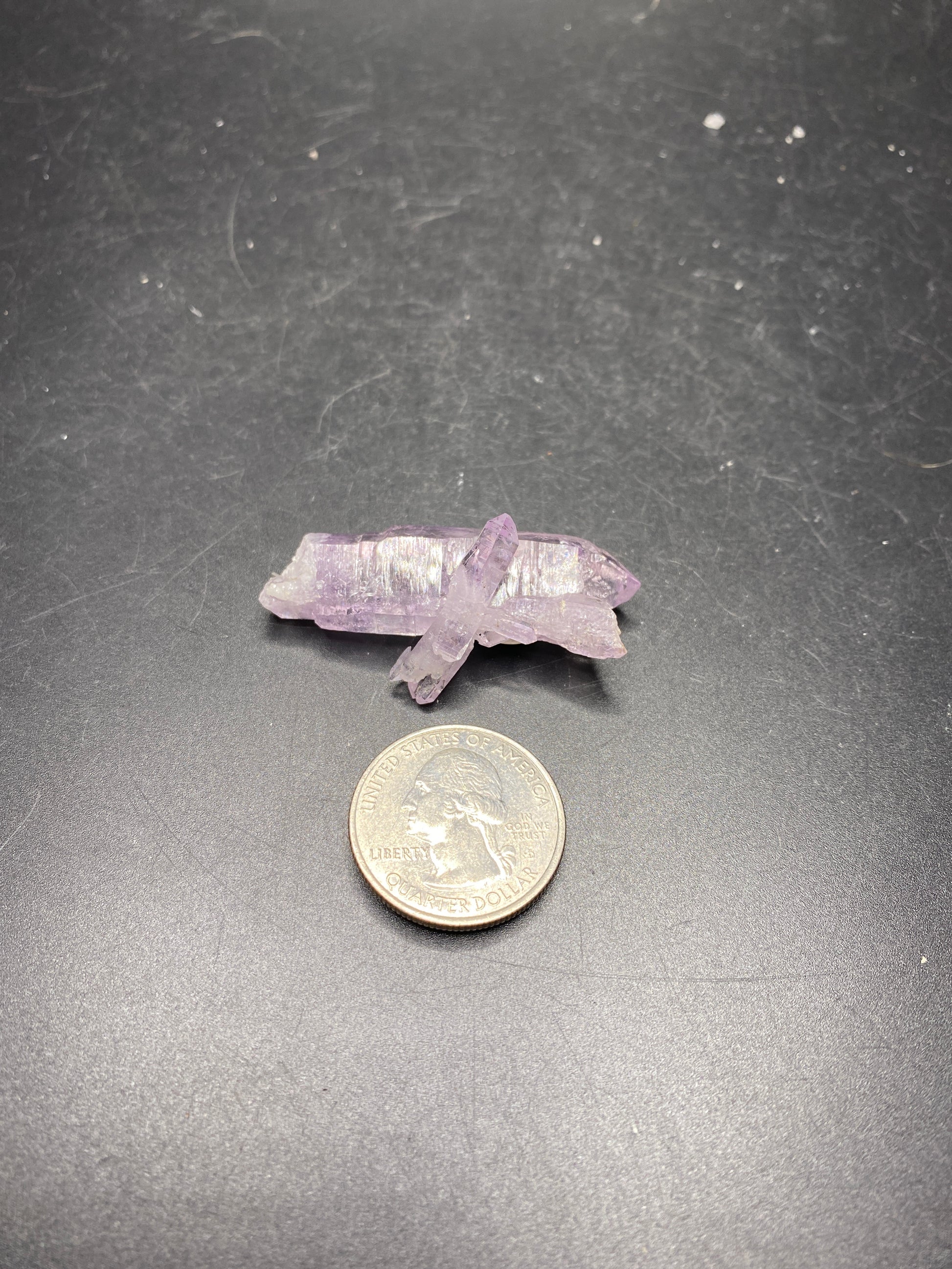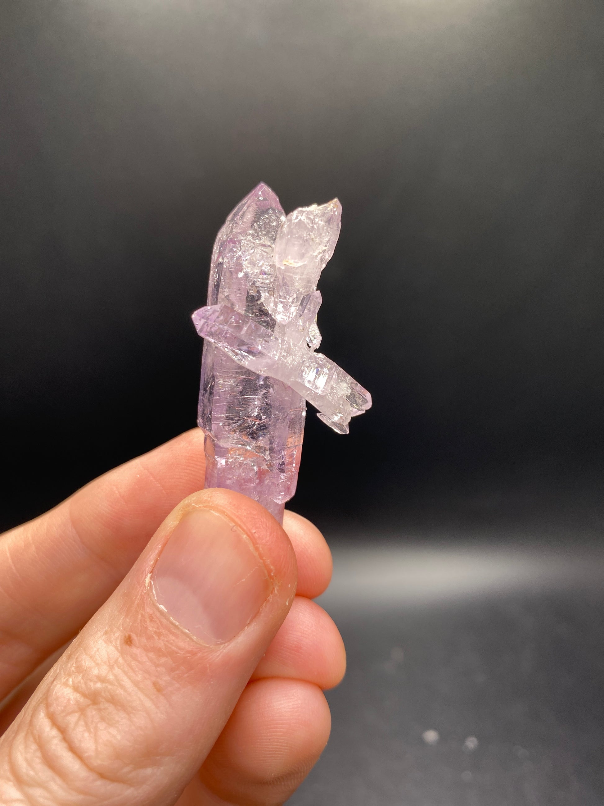 This stunning Vera Cruz Amethyst from Vera Cruz, Mexico features a unique combination of scepter grown crystals and double terminations. Weighing 11.2g, this one-of-a-kind stone is sure to make a beautiful addition to any collection.